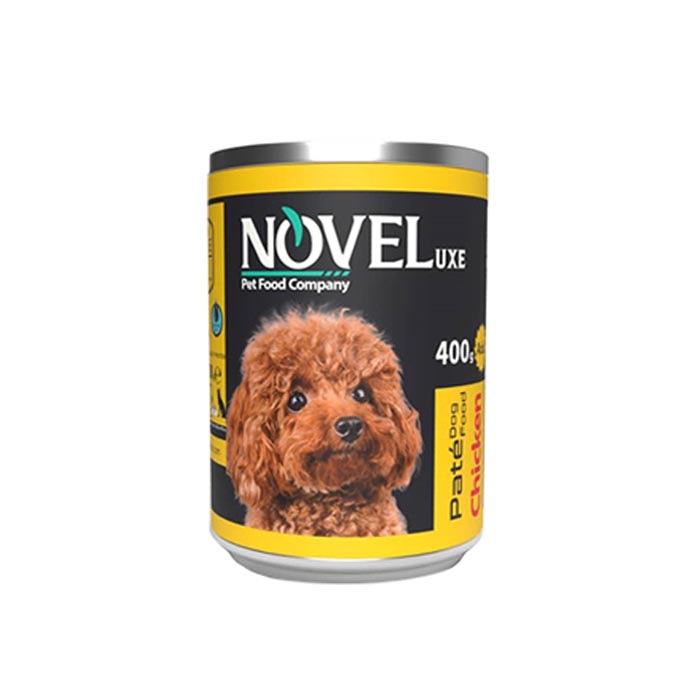 کنسرو نوول ۴۰۰ گرمی پته سگ، غذایی کامل و مقوی با بافت نرم و خوشخوراک است که در طعمهای متنوع بیف و سیرابی، مرغ، مرغ و گوشت و گوساله تولید شده و برای تغذیه روزانه انواع نژادهای سگ مناسب میباشد.