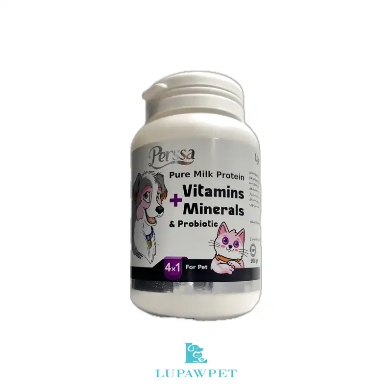 ویتامین مینرال سگ و گربه پرسا مکملی کامل برای تأمین ویتامینها و مواد معدنی موردنیاز بدن حیوان است که به افزایش انرژی، تقویت سیستم ایمنی و بهبود سلامت پوست و مو کمک میکند.